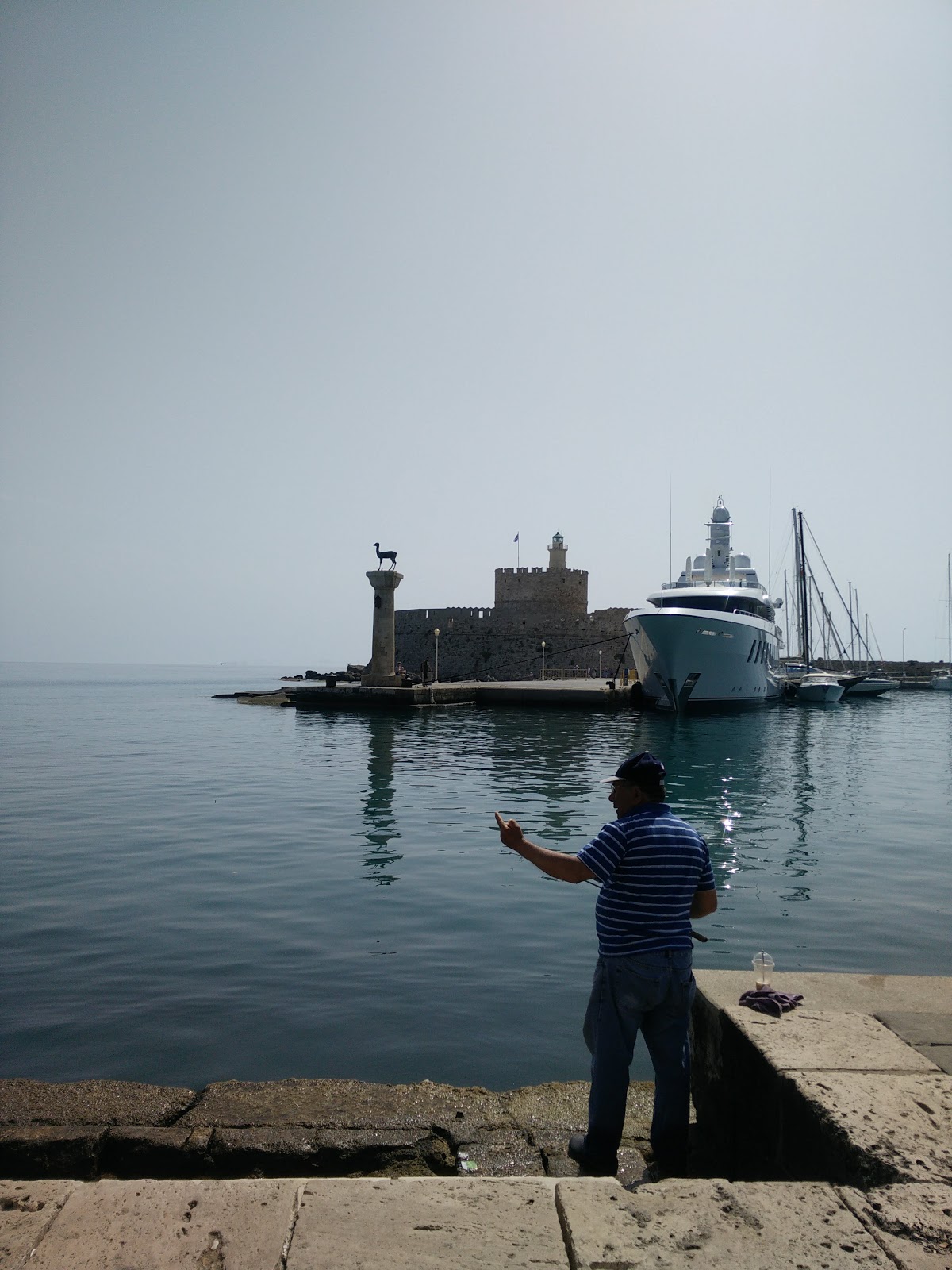 Après un copieux petit déjeuner au bord de la piscine, nous partons jusqu'au port. Un groupe de pêcheurs attend calmement quelques touches, un voilier s'apprête à prendre la mer, les vendeurs de promenade en mer cherchent le client et plus loin, d'énormes bateaux de croisière sont à quai.